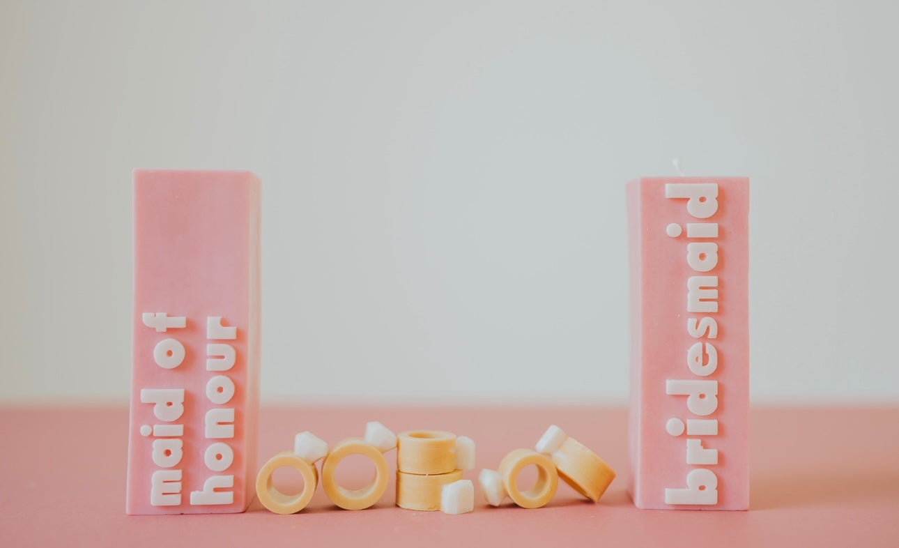 Simply select your fragrance, add to cart and pop a note of the colour you would like at checkout. Bride candles will be white with coloured writing, moh and bridesmaid candles will be the colour you request with white writing. If no colour is noted, colour will be selected for you.