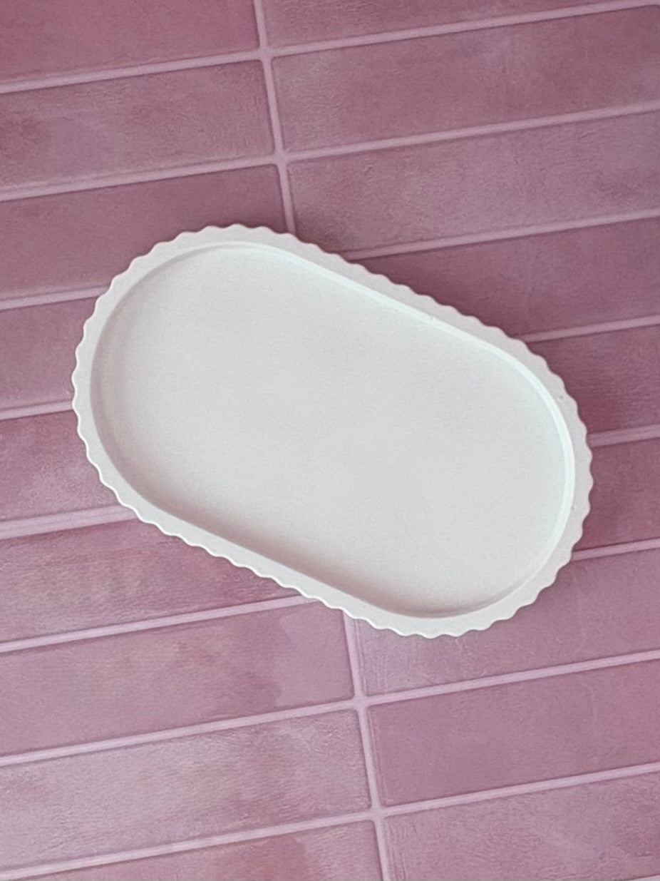 Hand poured curved stone candle tray and curved stone candle.